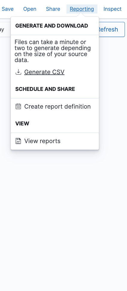 At the moment, there is no access to the "Reporting" view provided to customers. To download a report, you can use the "Discover" view.