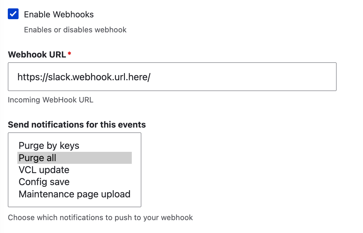 Optionally configure the webhooks (so you can ping Slack for instance when a cache purge is sent).