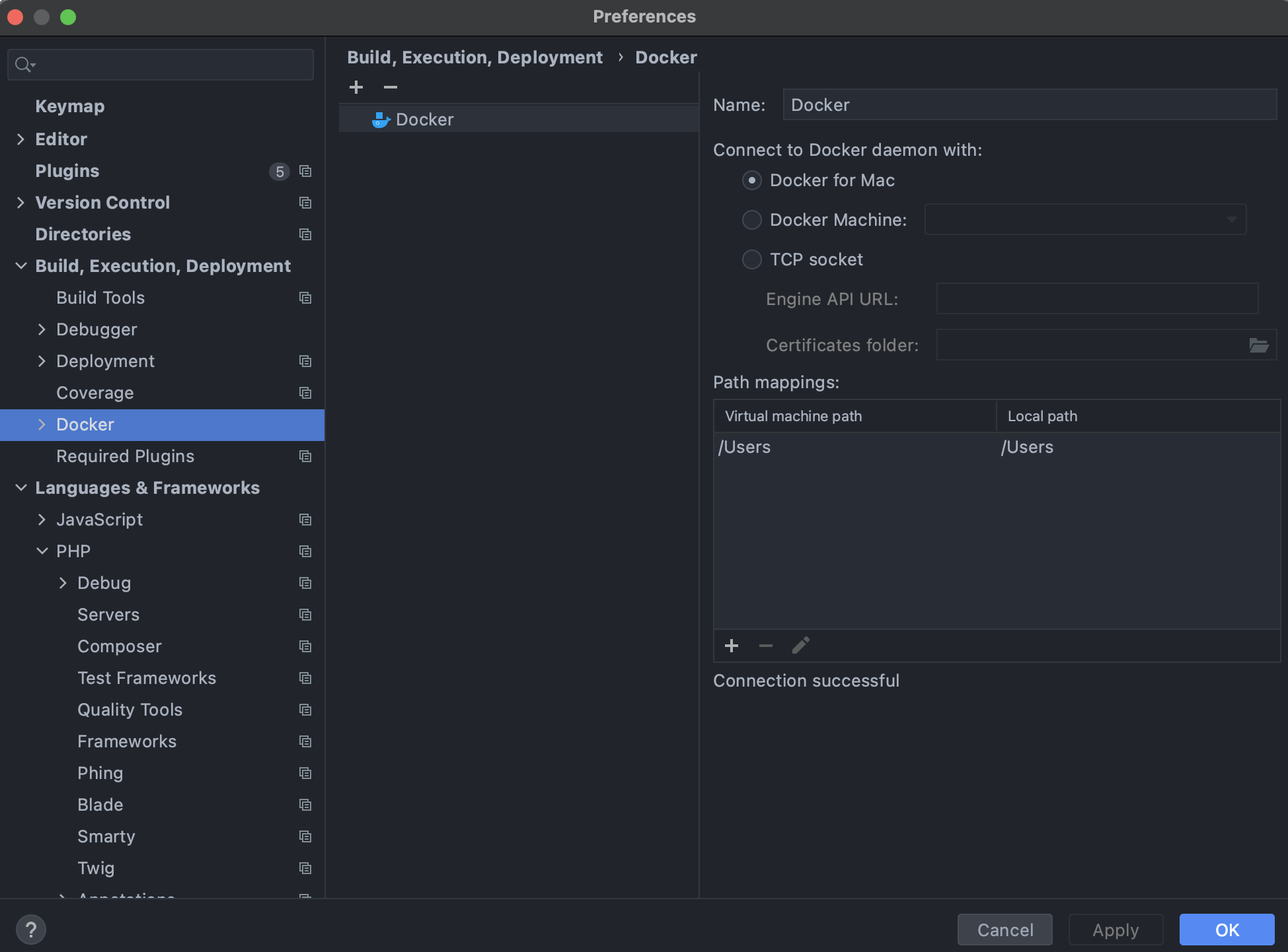 - In PhpStorm, go to File > Settings > Build, Execution, Deployment > Docker