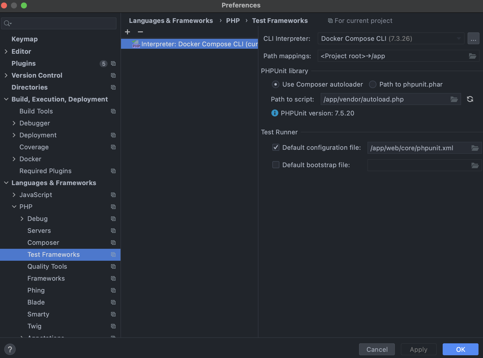 - In PhpStorm, go to File > Settings > Languages & Frameworks > PHP > Test Frameworks