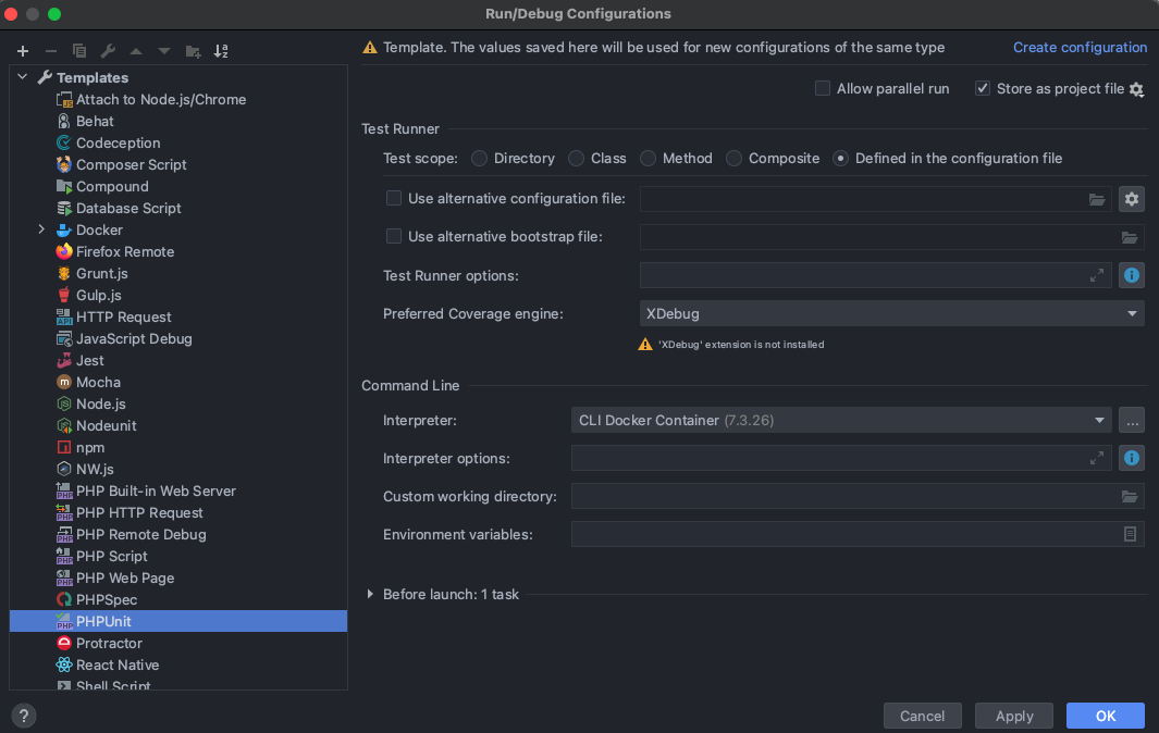 - In PhpStorm, go to Run > Edit Configurations... > Templates > PHPUnit