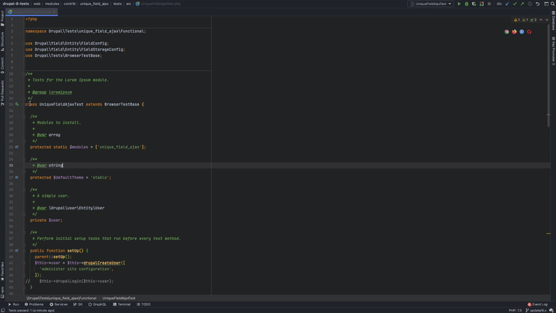 mysql://drupal:drupal@mariadb:3306/drupal#db - SIMPLETEST_BASE_URL: