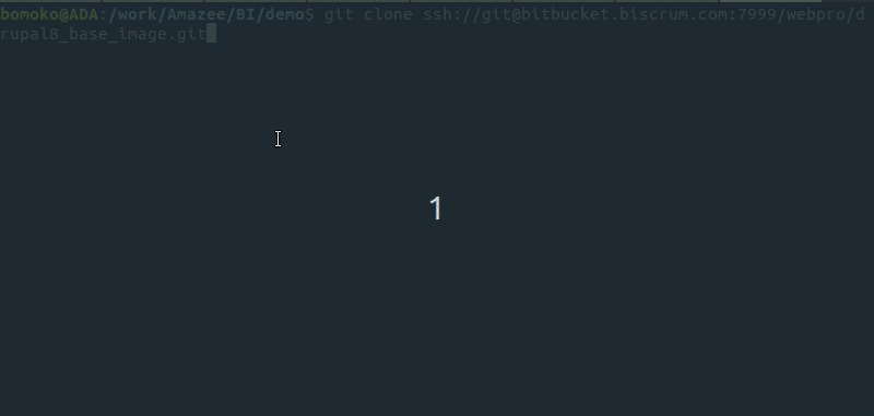 This is just pulling down the Git repository locally. In the case of the Drupal 8 base image. In this example, we're using Bitbucket, so we will run: