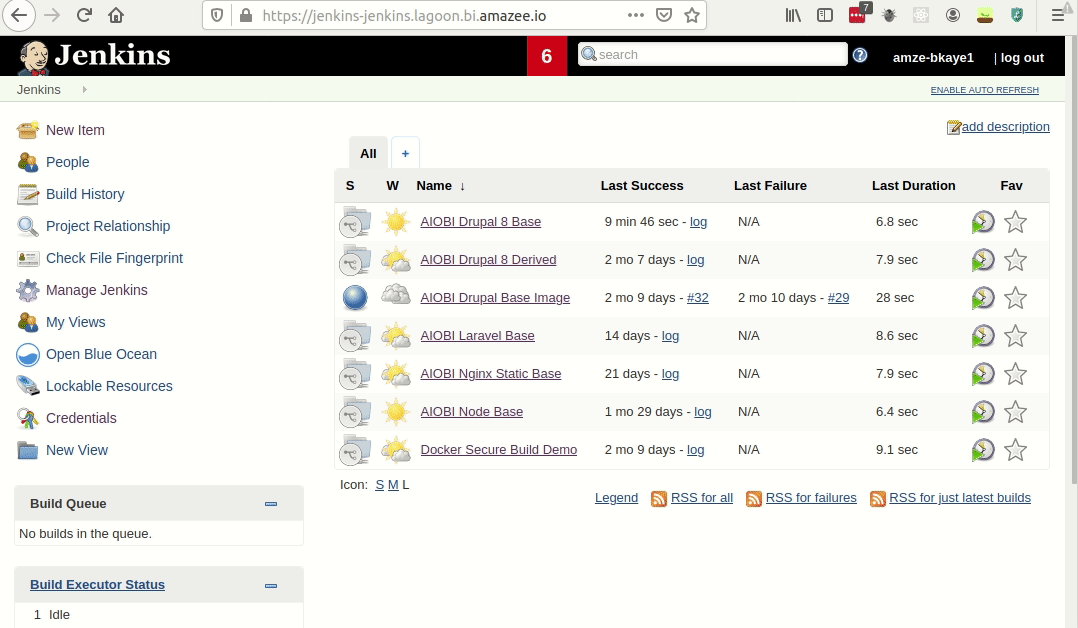 BUILD_NUMBER- This is injected by Jenkins automatically.GIT_BRANCH- This is provided by the Jenkins build process itself. Depends on the branch being built at the time (develop, main, etc.).DOCKER_REPO/DOCKER_HUB- This is defined inside the Jenkinsfile itself. It points to the Docker project and hub into which the resulting images will be pushed.DOCKER_USERNAME/DOCKER_PASSWORD- These are used to actually log into the Docker repository early in the build. These variables are stored inside of the Jenkins credentials. These are used in the Jenkinsfile itself and are not part of the Makefile. This means that if you’re building base images outside of Jenkins (i.e. locally, to test, etc.) you have to run adocker loginmanually before running any of the make steps.