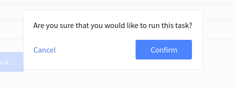 When the confirmationText field has text, it will be displayed with a confirmation modal in the UI before the user is able to run the task.