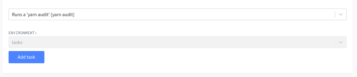 The [project|environment] set of fields will attach the task to either the project or environment (depending on the key you use), with the value being the id. In the case we're considering for our yarn audit we will specify we're targeting a project with an ID of 42.